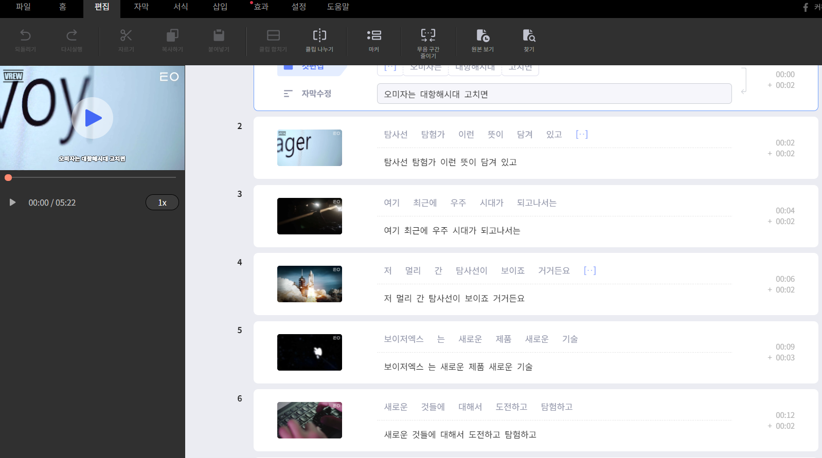 녹화한 영상의 자막을 일일히 받아쓰며 입력하며 싱크를 맞추는 수고도,