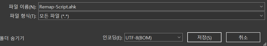 직접 쓰신다면 내용을 작성하시고, 메모장을 .ahk 로 저장하시면 됩니다.