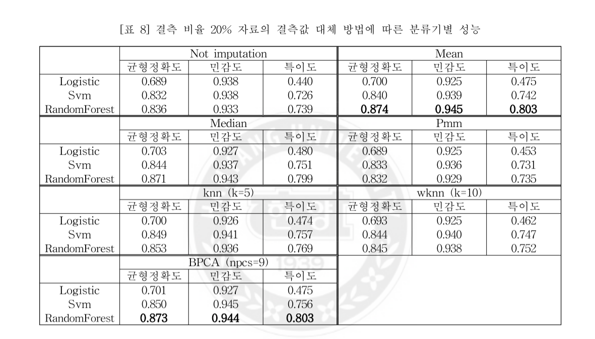 - 랜덤 포레스트와 결합할 경우, 가장 민감도 결과가 좋았다.