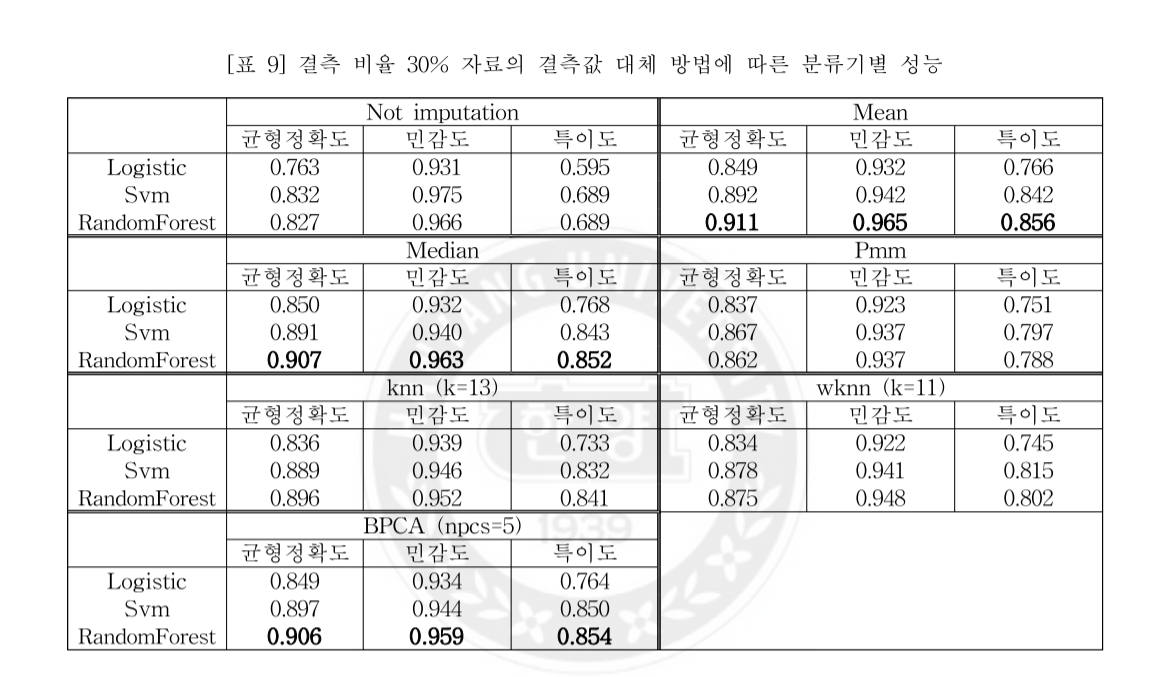 - 하지만 로귀스틱 회귀분석과 함께 사용 시 균형 정확도와 특이도가 하락했다