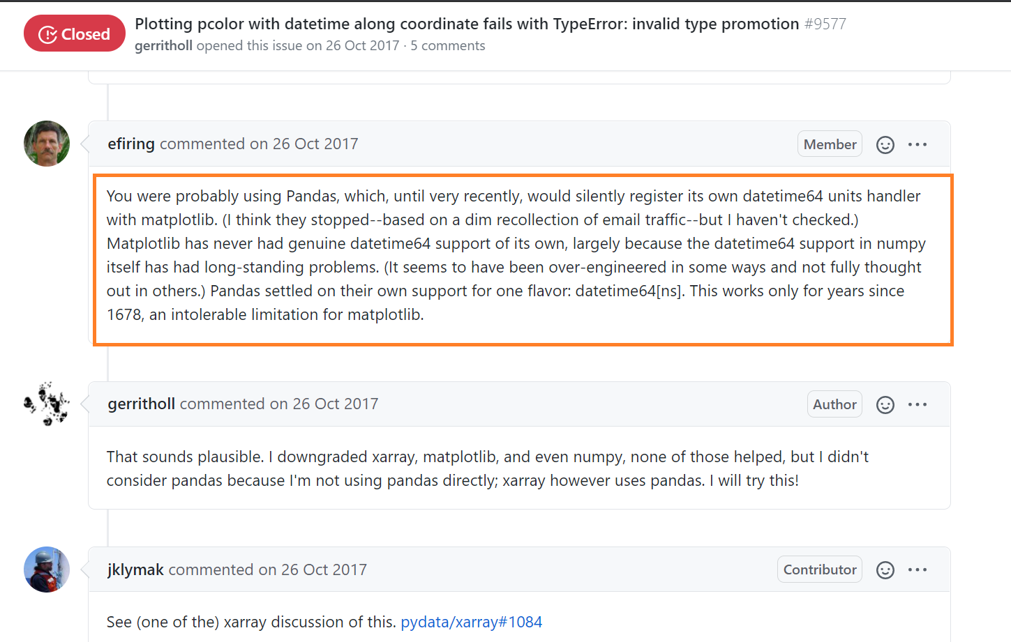 Plotting pcolor with datetime along coordinate fails with TypeError: invalid type promotion · Issue #9577 · matplotlib/matplot