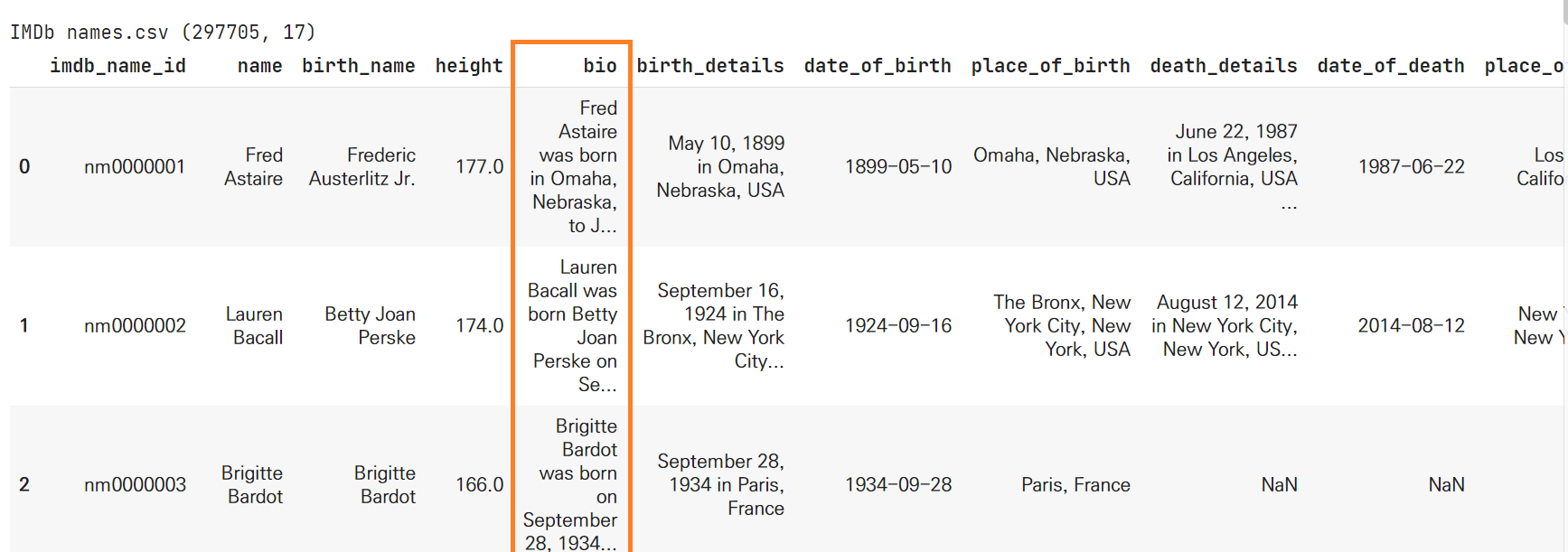 데이터셋에 bio라고 biography 정보가 있는데,