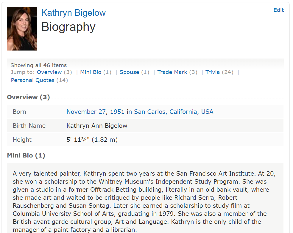 IMDb 인물 페이지 안의 상세 인물 정보이다.