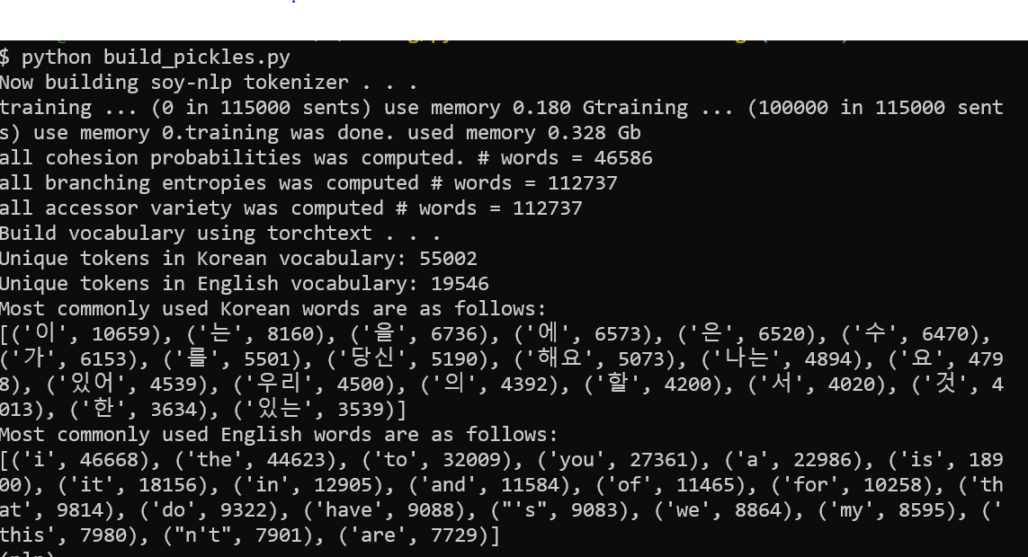 python build_pickles.py --kor_vocab KOREAN_VOCAB_SIZE --eng_vocab ENGLISH_VOCAB_SIZE