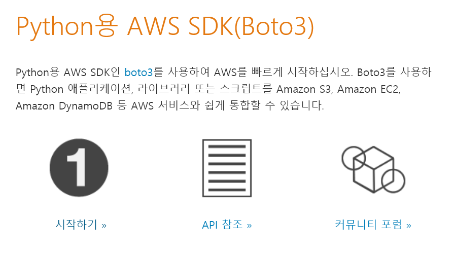 다음으로 boto3을 설치한다.(파이썬 사용자의 경우)