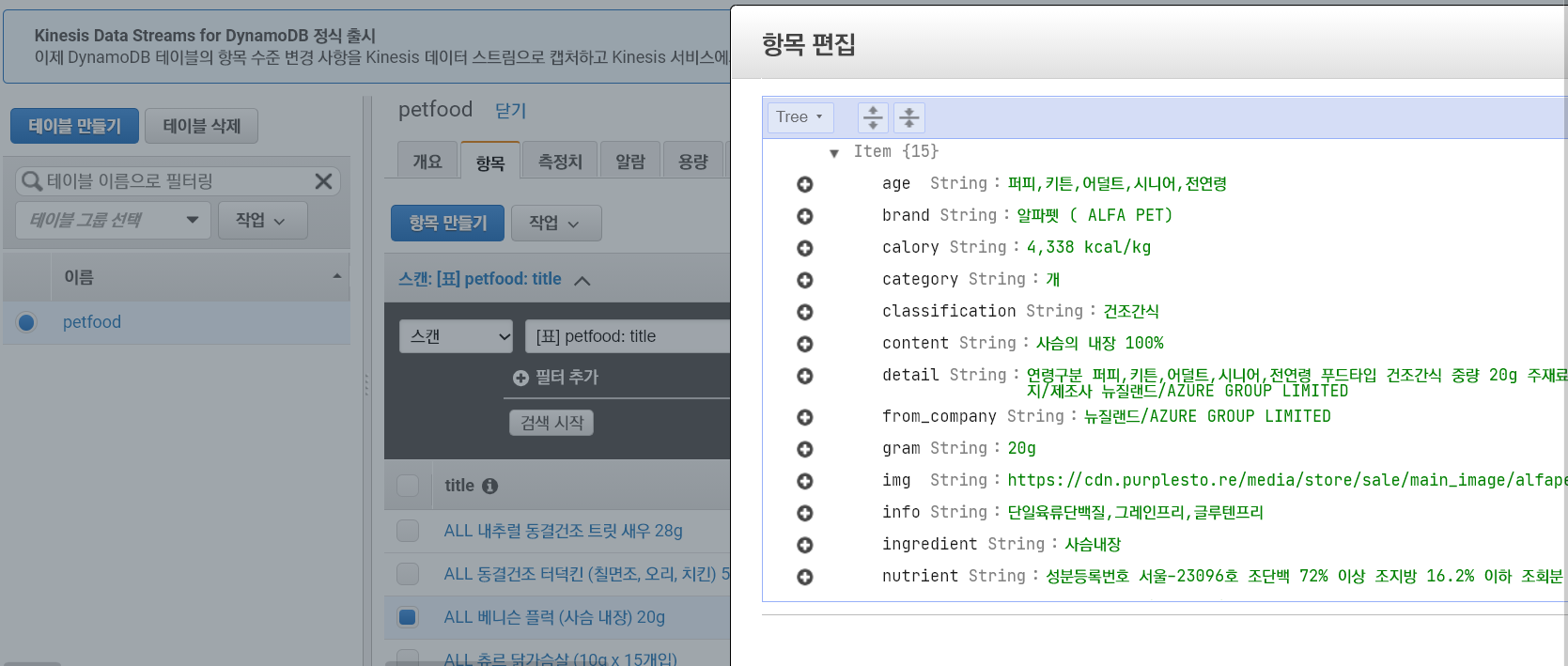 Dynampdb-테이블-항목으로 가서 보니 잘 들어갔다.