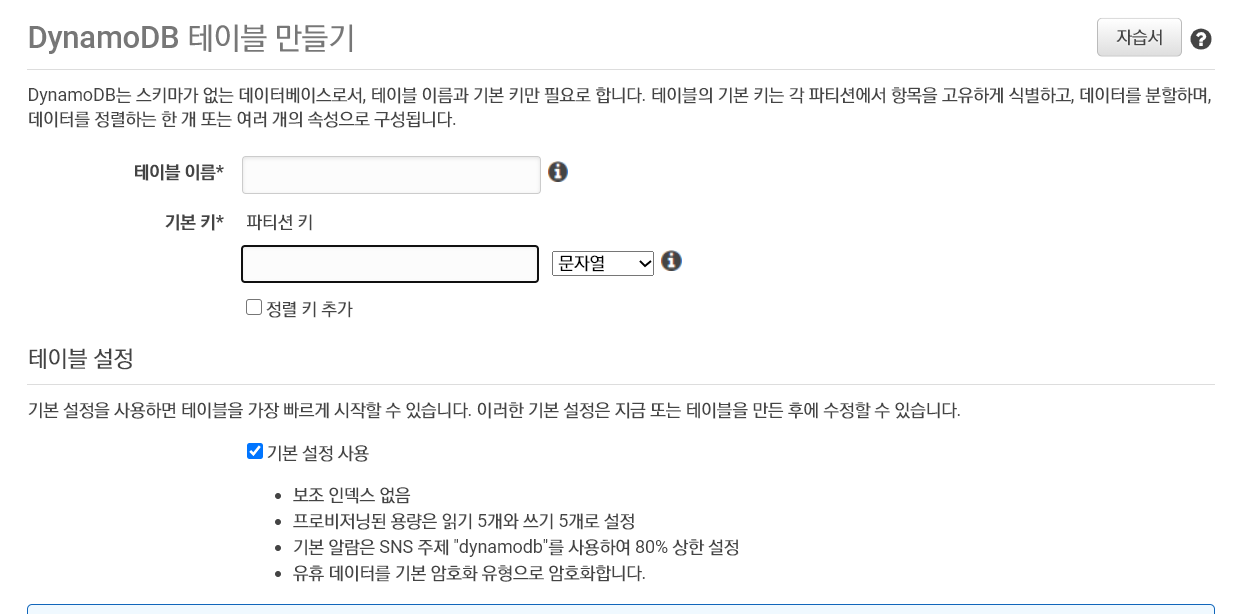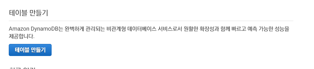 2. 계정을 만들었으면 Dynamodb로 가서 테이블을 만든다.