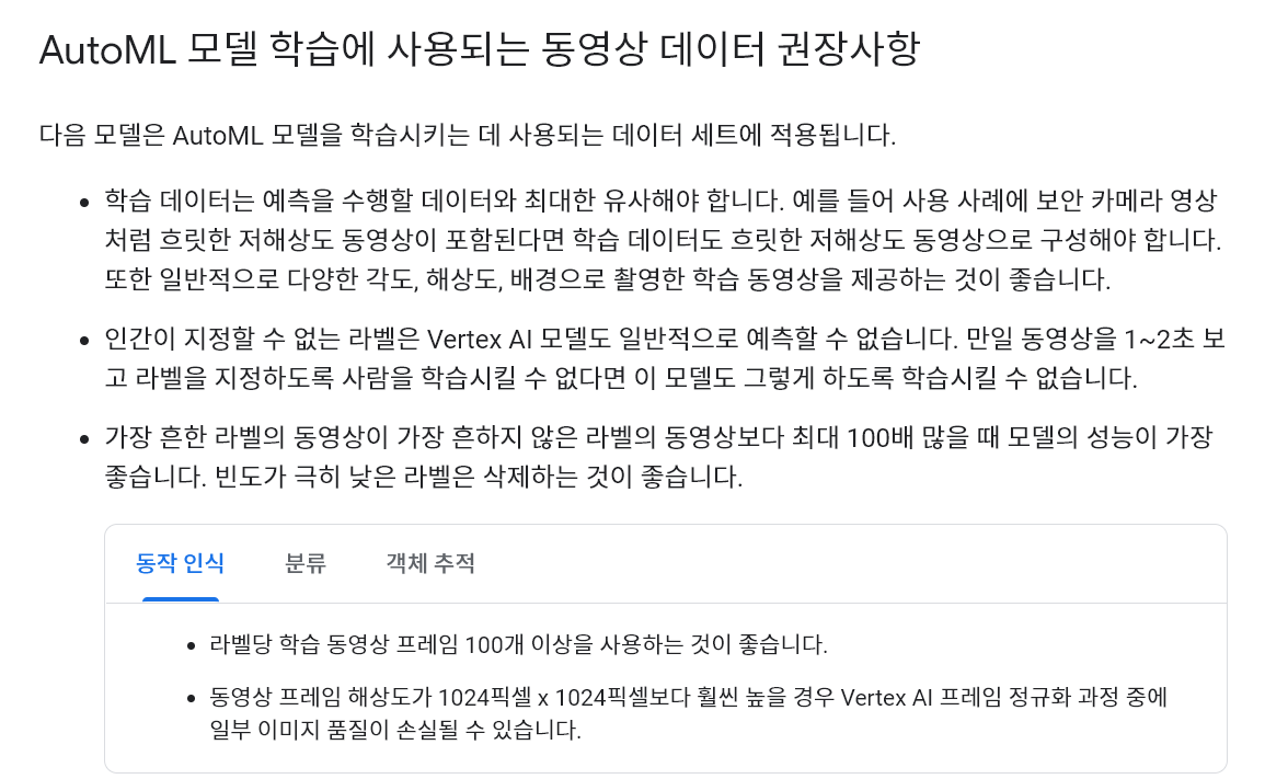 AutoML로 동작 인식(농구, 축구, 야구 등의 행동의 종류와 그 행동이 시작되는 시간을 인식) 하려면