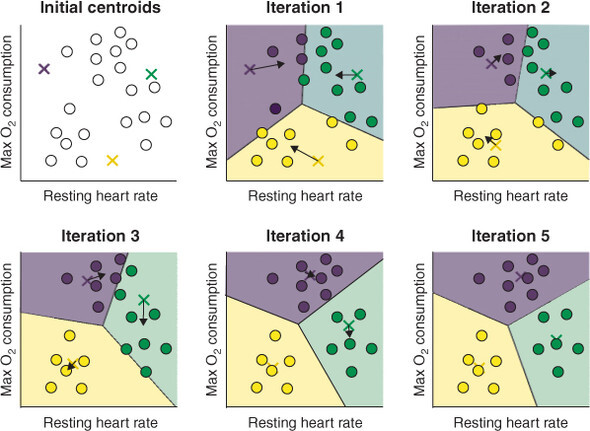 4. 클러스터 중심에 변화가 없을 때까지 3-4를 반복하는 것이 k-평균 알고리즘이다.