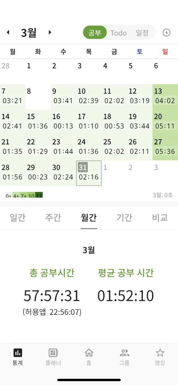 2주차부터 참여해서 3월 총 결산은 못 낸게 아쉽지만, 그래도 이만하면 꾸준하게 3월을 보냈다고 스스로를 칭찬해본다.