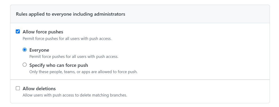레파지토리 설정에서 branch -> force push 권한이 체크가 되어 있어야 한다