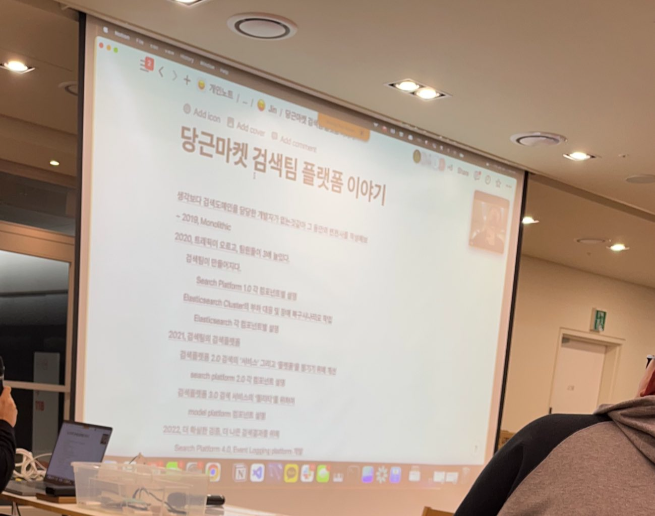 간만에 aws 사용자모임에 참여하기도 했다. 당근마켓에서 검색팀 플랫폼을 구성하시는 개발자분의 세션이었는데, 매달 사용자가 200만 -> 1000만으로 커지는 당근마켓 서비스의 검색 플랫폼을 어떻게 구성하였는지 듣는 것이 꽤 흥미로웠다..!