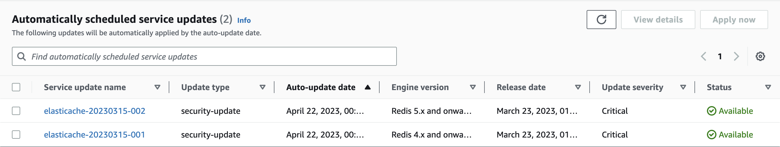 최근 elasticache-20230315-001, 002 서비스 업데이트가 특정 Elasticache를 대상으로 업데이트 일정이 잡혔다.