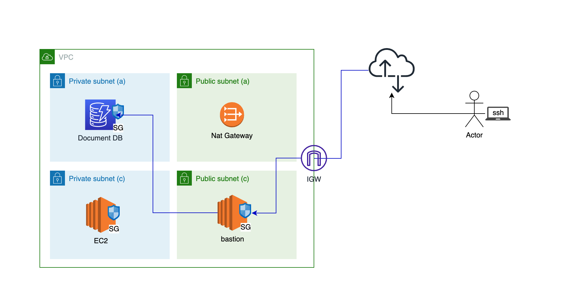 개발자가 노트북에서 ssh로 접근할 수 있는 bastion 서버를 퍼블릭 서브넷에 만들어줍니다.