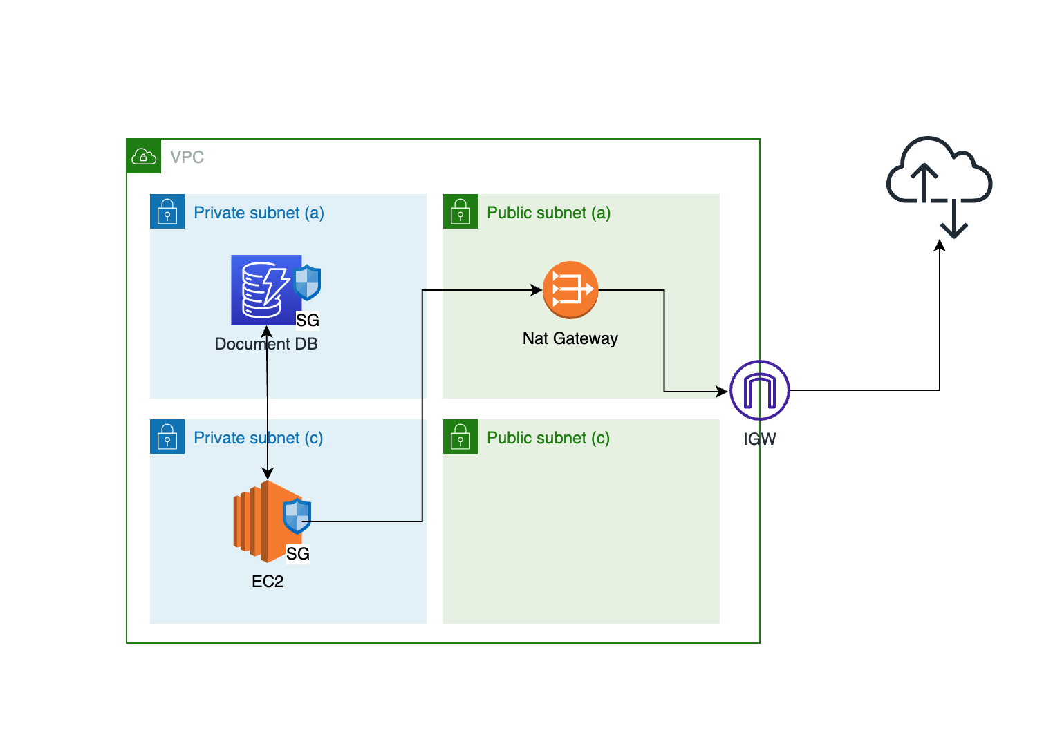 프라이빗 서브넷의 서버는 인터넷 망으로 요청이나 응답을 보낼 때 Nat Gateway -> Internet Gateway를 거칩니다.