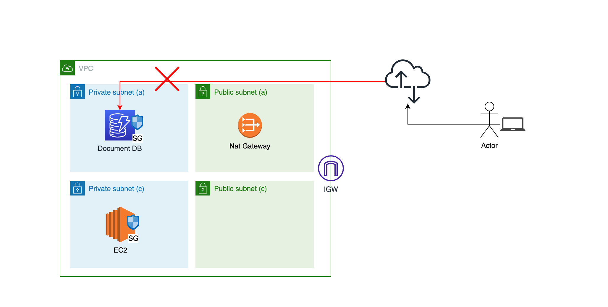 만약 개발자의 노트북 같이 VPC 외부에서 요청을 하면서도 DB에 연결을 하려면 2가지 방법이 있습니다.