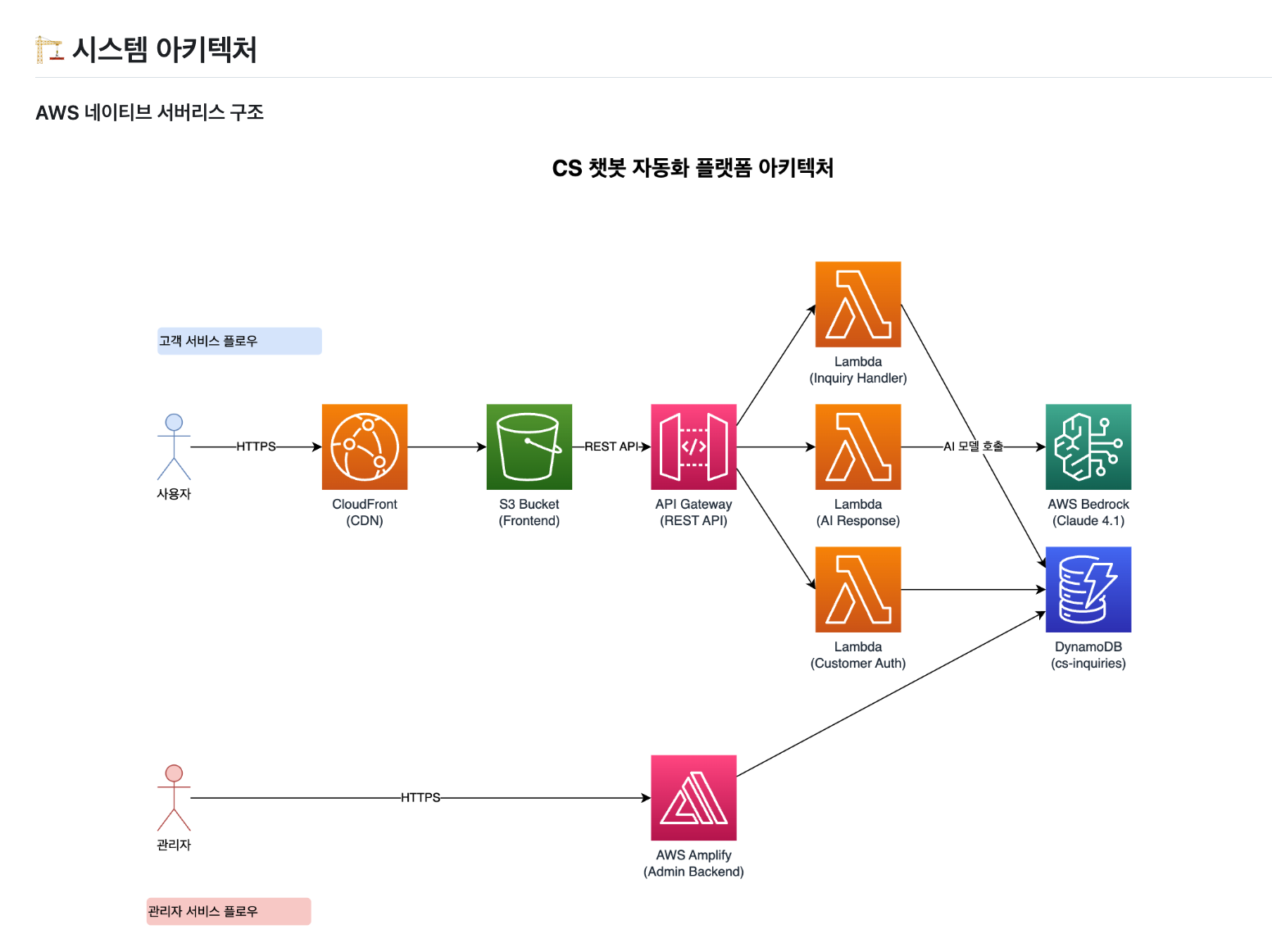 우리의 서비스 주제는 "운영 전담 인력이 없는 회사를 위한, 고객 CS 문의 시 (회사의 기존 응답/문서 히스토리를 바탕으로) 1차적으로 AI가 답변, AI의 답변에 고객이 불만족 시 바로 원클릭으로 사람 상담사 연결을 제공하는 AI기반 CS 문의 자동화 솔루션"이었다.