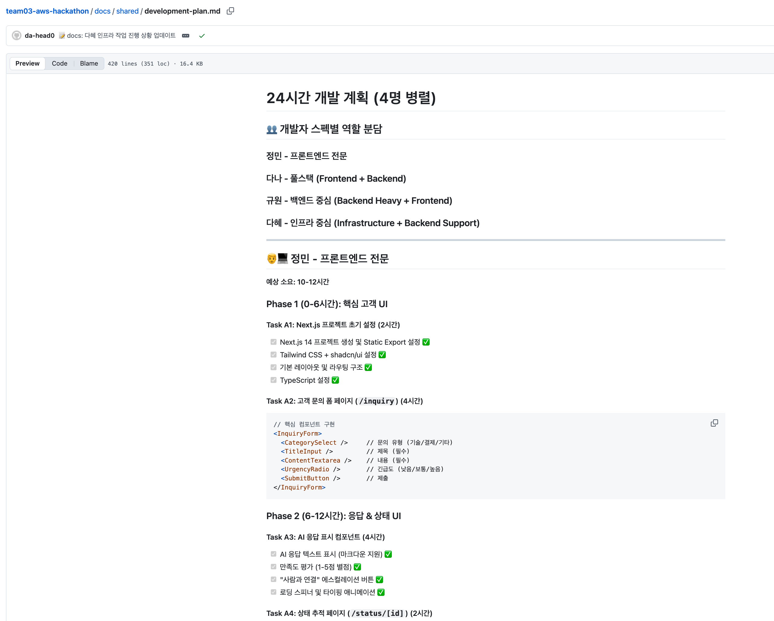 - 이 문서를 커밋하고 나니 첫날 오후 3시였다. 그만큼 초기 황금시간을 AI를 팀 차원에서 전략적으로 쓰기 위해 투자했다.