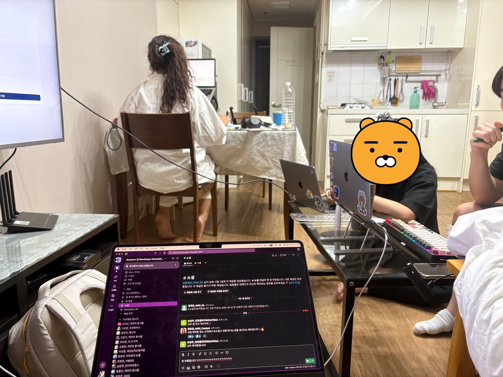 - 토요일이었는데, 정말 많은 AWS 직원분들이 준비/심사위원으로 출근하시는 걸 보고 정말 AWS는 열정적인 회사구나 느꼈다. 특히 높으신 SA분들(!)까지 나와서 주말에 해커톤을 위해 시간을 사용하다니.... 정말 신기하고 놀라웠다.