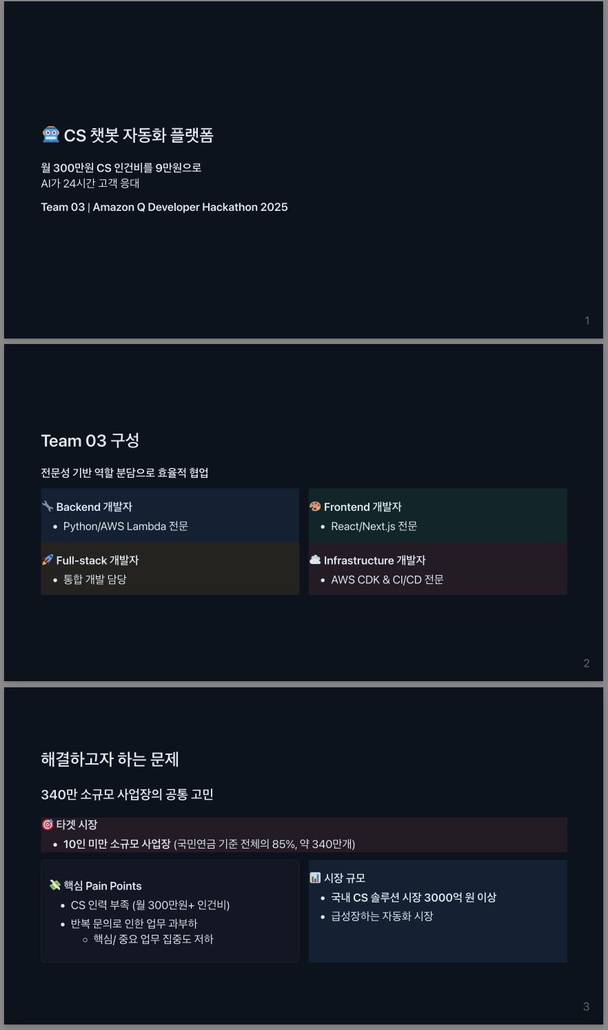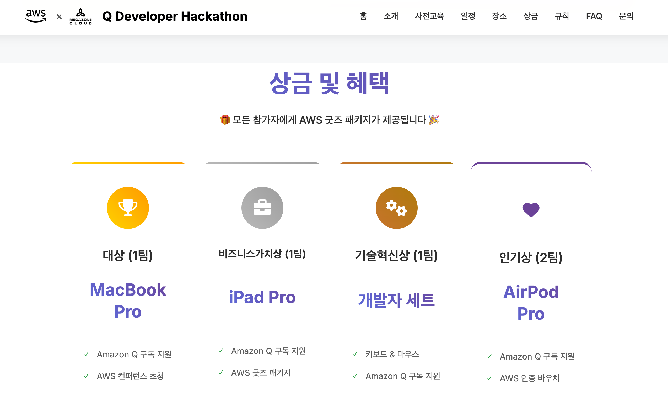 🏆[Amazon Q Hackathon 2025] 9월 5일 - 6일, 아마존 큐 해커톤에서 감사하게도 대상을 수상하였습니다!🎉 AUSG 친구들과 처음으로 함께 참가한 해커톤이었는데, 다 함께 어떤 기술들을 서비스에 어떻게
