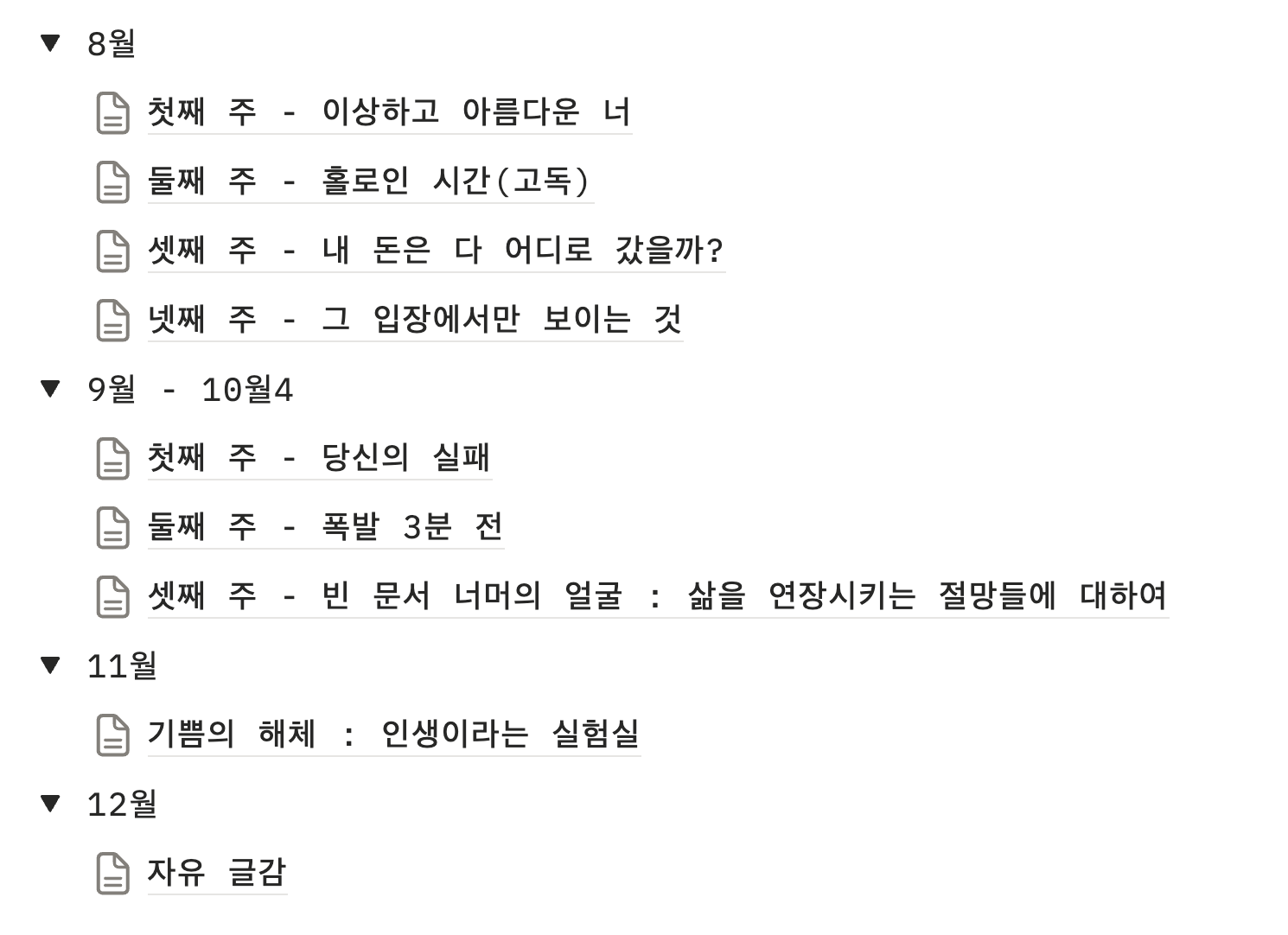 양다솔 작가의 <쓰기로 마음먹은 당신에게> 란 책에 소개된 글감들을 골라 정기적으로 글을 쓰는 온라인 글방에 참여했다.