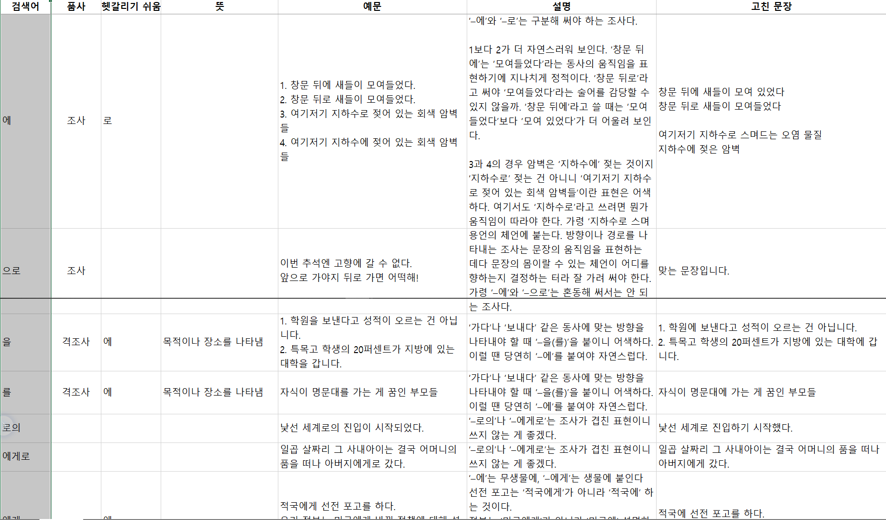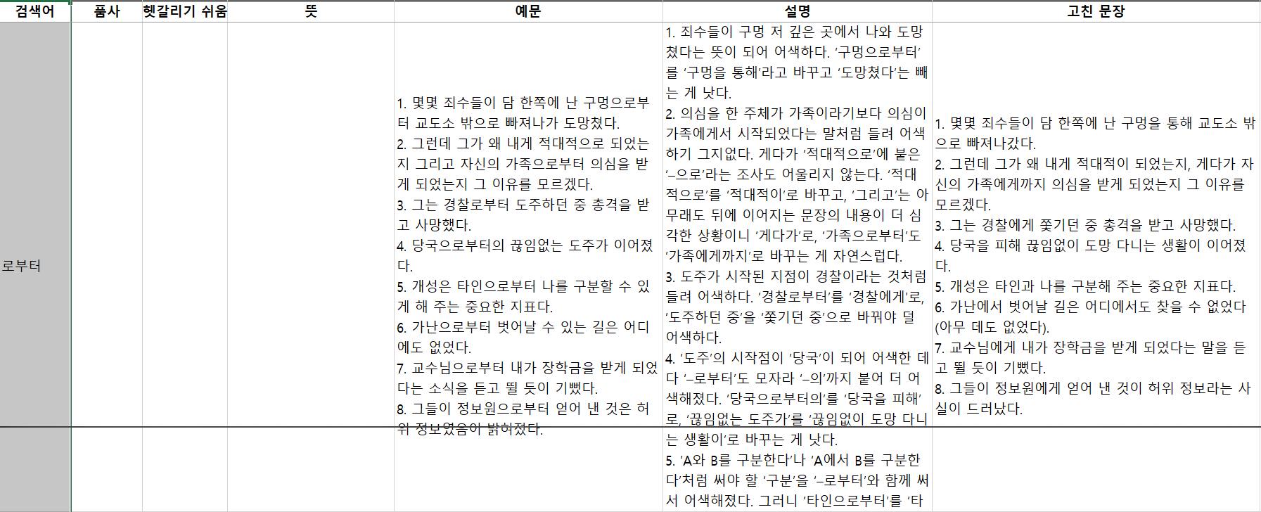 '고친 문장' 예시 칼럼을 추가했다. 더 직관적으로 이해가 쉬워진 느낌이다.