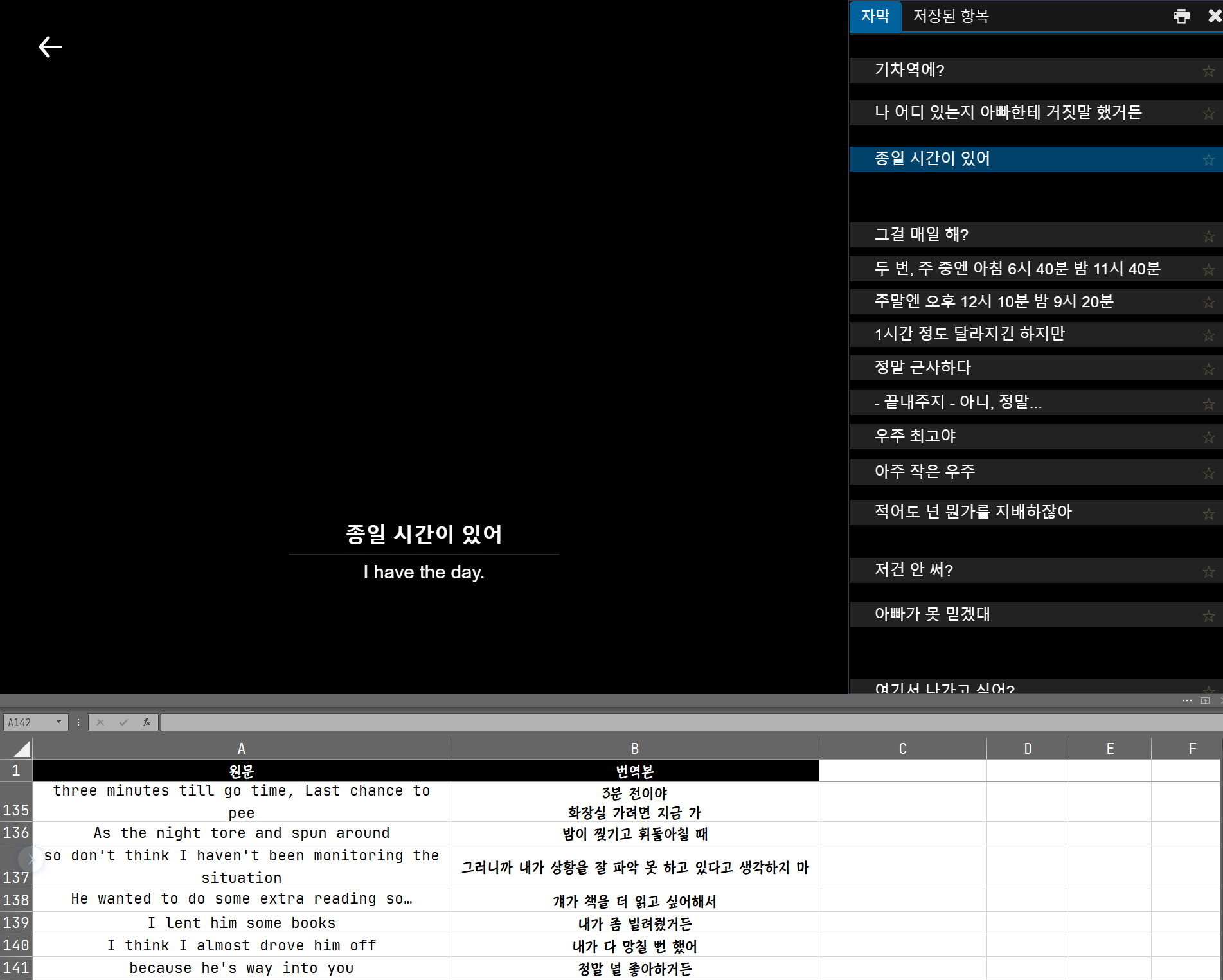 | 반쪽의 이야기 자막 공부 #3 (0) | 2020.09.08 |