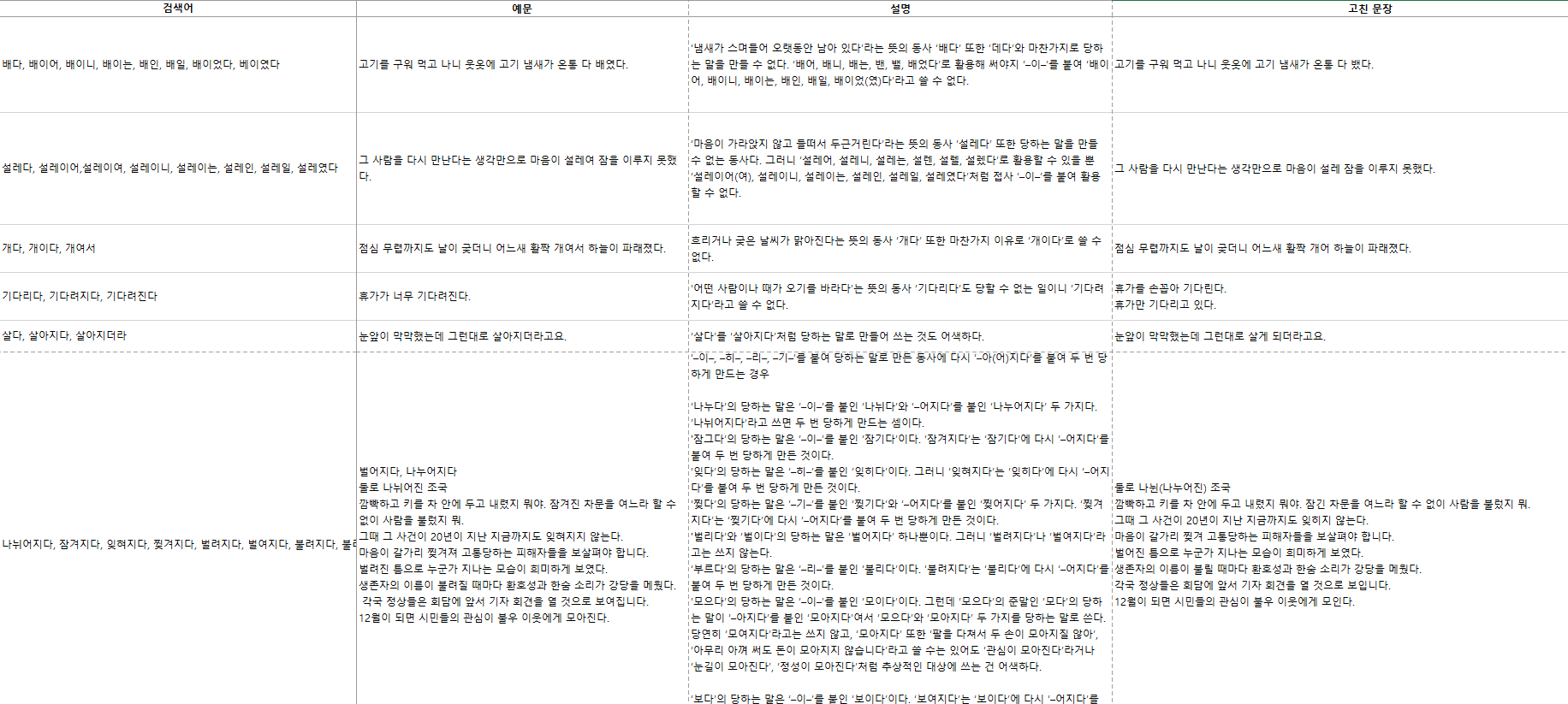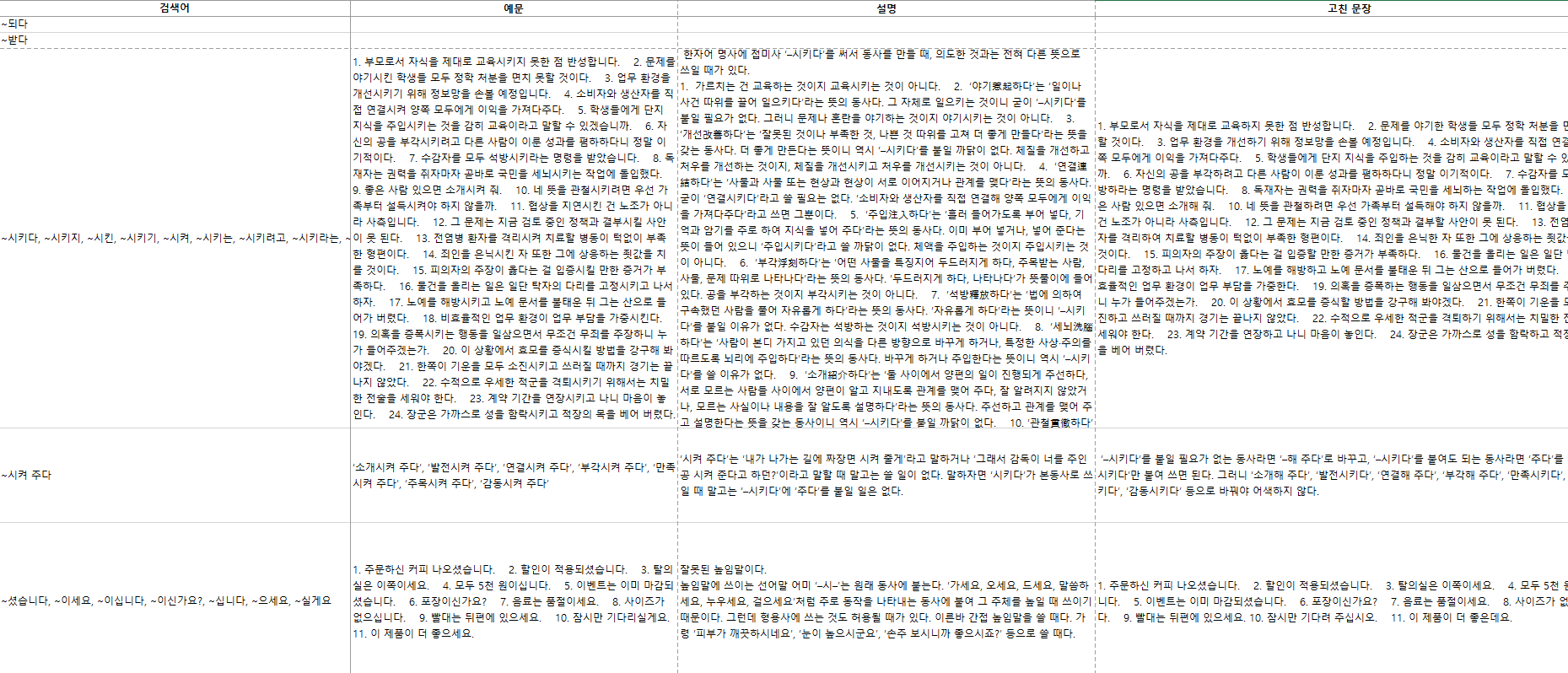 가 있는데, 이게 책 예문만이다. 실제 사용되는 어미들을 다 수집해서 변형형으로 db에 넣어주어야 한다.