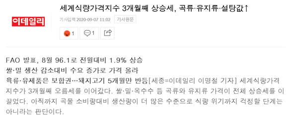 최근 계속된 폭우와 장마, 코로나 사태로 농산물 가격이 올랐다는 것도 이 파트에 관심을 가지게 했다.