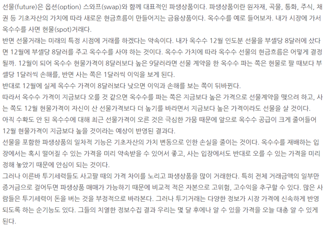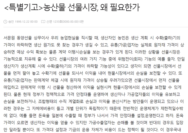 농산물은 성격상 현물이 아닌 선물로 거래된다.