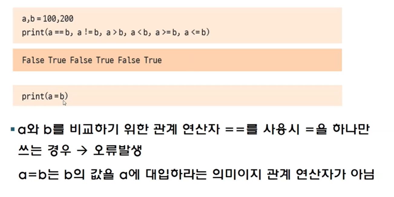 =는 b의 값을 a에 대입하기 위한 연산자이지 둘이 같냐고 비교하는 연산자가 아니다.