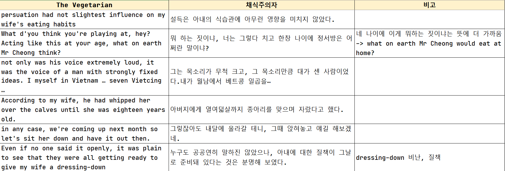 > 뭐 때문에 무서웠고 못 견디게 싫은지 다 축약됨... 번역문만 보면 이게 뭔 소린가 싶다.