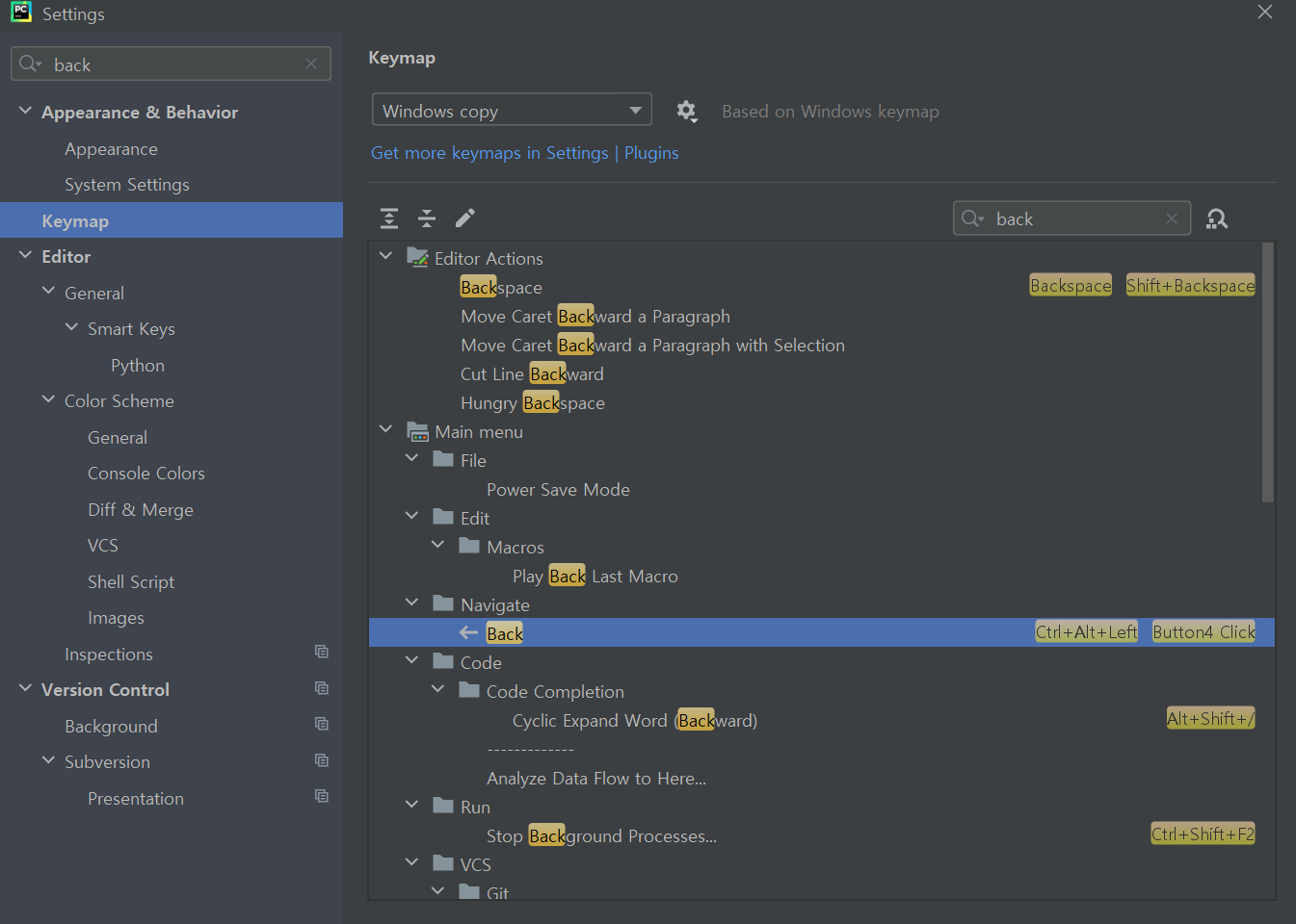 파이참에서 back, forward (ctrl+alt+left/right)가 안 먹힐 때