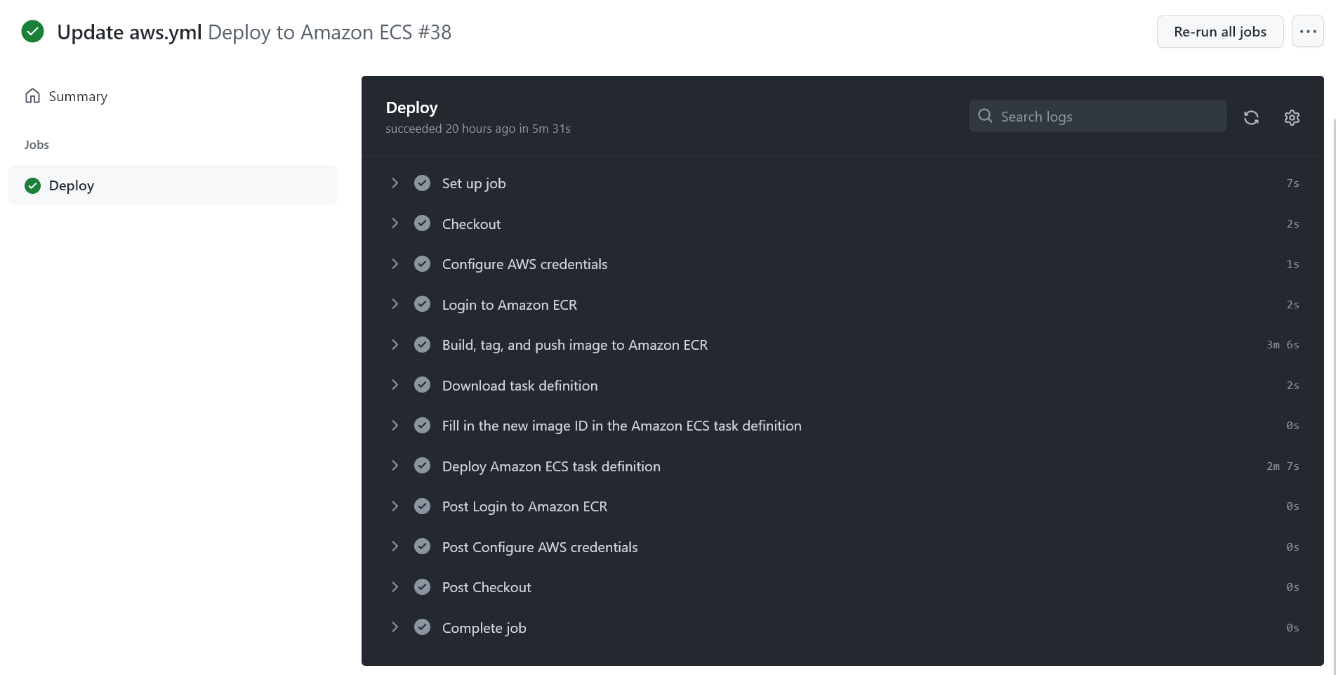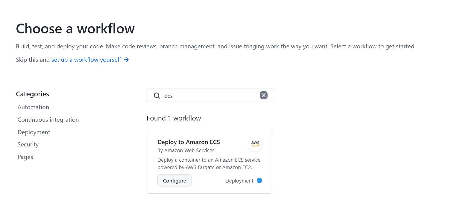 Github Actions - new workflow - ecs 를 검색하면 workflow 양식이 바로 뜨는데,