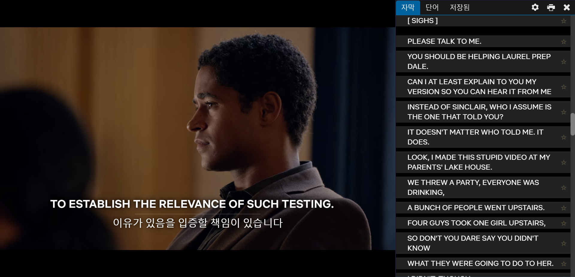 넷플릭스 <범죄의 재구성> 한국어 더빙으로 법정물 표현 수집 #2
