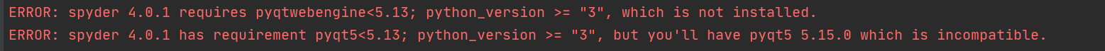 2. spyder 4.0.1 requires pyqtwebengine<5.13; python_version >= "3", which is not installed.